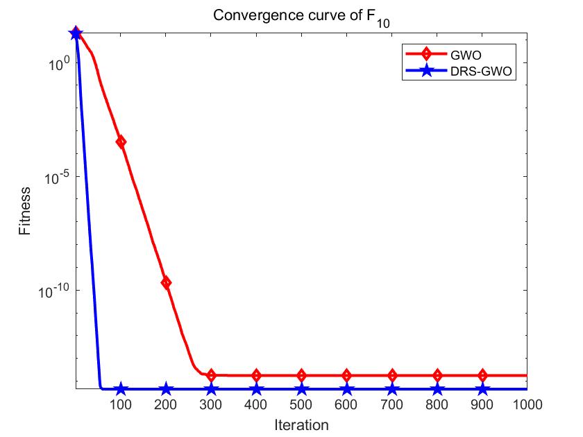 四、算法效果—选取单峰函数F1,多峰函数F10为例