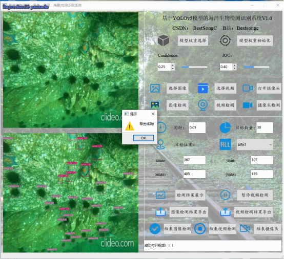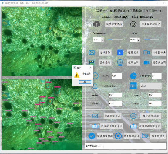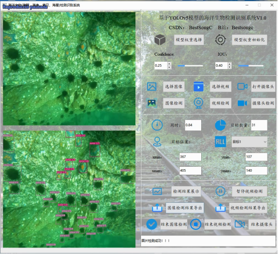 摘要:基于深度学习的高精度海洋生物检测识别系统可用于日常生活中检测与定位海洋生物目标(海胆:echinus,海参:holothurian,扇贝:scallop,海星:starfish),利用深度学习算法可实现图片、视频、摄像头等方式的海洋生物目标检测识别,另外支持结果可视化与图片或视频检测结果的导出。本系统采用YOLOv5目标检测模型训练数据集,使用Pysdie6库来搭建页面展示系统,同时支持ONNX、PT等模型作为权重模型的输出。本系统支持的功能包括海洋生物训练模型的导入、初始化;置信分与IOU阈值的调节、图像上传、检测、可视化结果展示、结果导出与结束检测;视频的上传、检测、可视化结果展示、结果导出与结束检测;摄像头的上传、检测、可视化结果展示与结束检测;已检测目标列表、位置信息;前向推理用时。另外本海洋生物检测识别系统同时支持原始图像与检测结果图像的同时展示,原始视频与检测结果视频的同时展示。本博文提供了完整的Python代码和使用教程,适合新入门的朋友参考,完整代码资源文件请转至文末的下载链接。