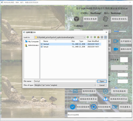 近年来,机器学习和深度学习取得了较大的发展,深度学习方法在检测精度和速度方面与传统方法相比表现出更良好的性能。YOLOv5是单阶段目标检测算法YOLO的第五代,根据实验得出结论,其在速度与准确性能方面都有了明显提升,开源的代码可见https://github.com/ultralytics/yolov5。因此本博文利用YOLOv5检测算法实现一种高精度海洋生物识别检测模型,再搭配上Pyside6库写出界面系统,完成目标检测识别页面的开发。注意到YOLO系列算法的最新进展已有YOLOv6、YOLOv7、YOLOv8等算法,将本系统中检测算法替换为最新算法的代码也将在后面发布,欢迎关注收藏。