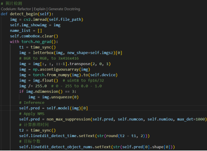 在测试阶段,我们使用了训练好的模型来对新的图片和视频进行检测。通过设置阈值,将置信度低于阈值的检测框过滤掉,最终得到检测结果。同时,我们还可以将检测结果保存为图片或视频格式,以便进行后续分析和应用。本系统基于YOLOv5算法,使用PyTorch实现。代码中用到的主要库包括PyTorch、NumPy、OpenCV、PyQt等。