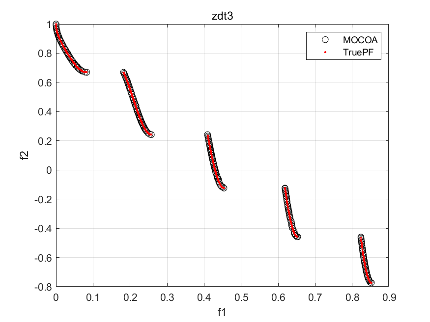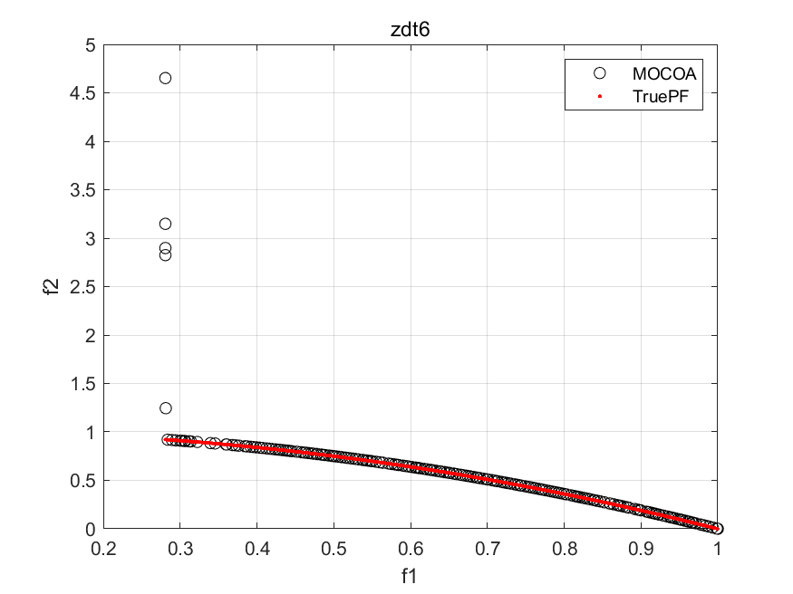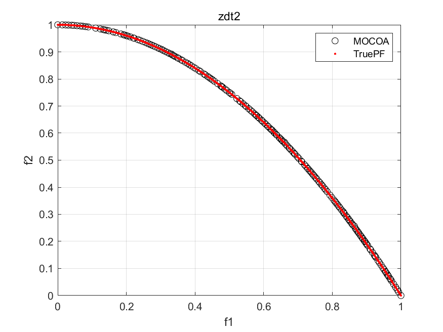 h_pf = plot(MultiObj.truePF(:,1),MultiObj.truePF(:,2),'.r'); hold on;