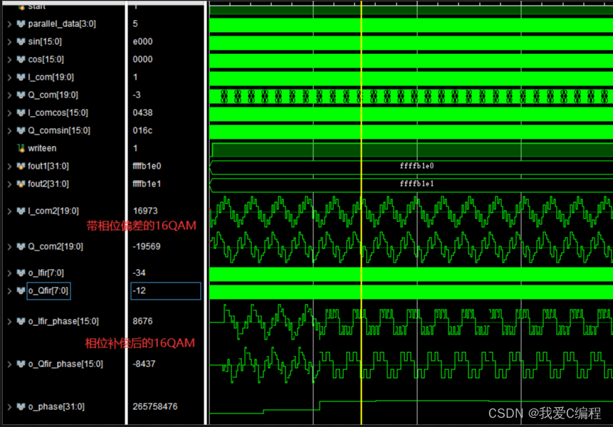 对接收信号进行采样和定时,并进行载波恢复,得到16QAM调制信号的实部和虚部。