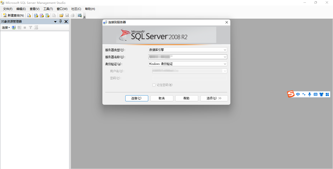 - 第一步:打开数据库 选择windows身份验证