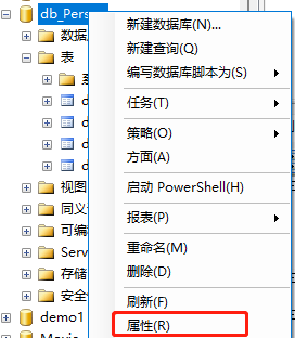 - 打开SQL server 数据库 找到db_Person数据库右键
