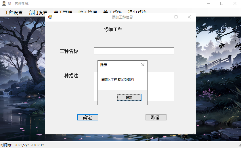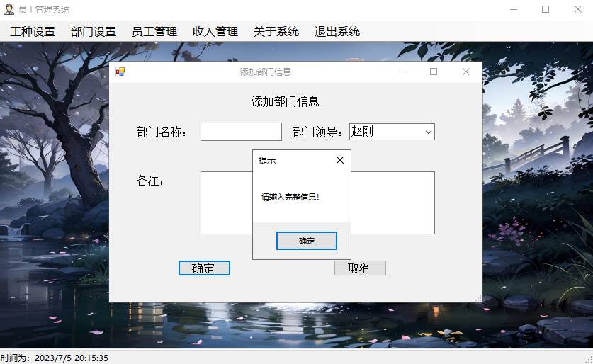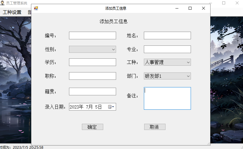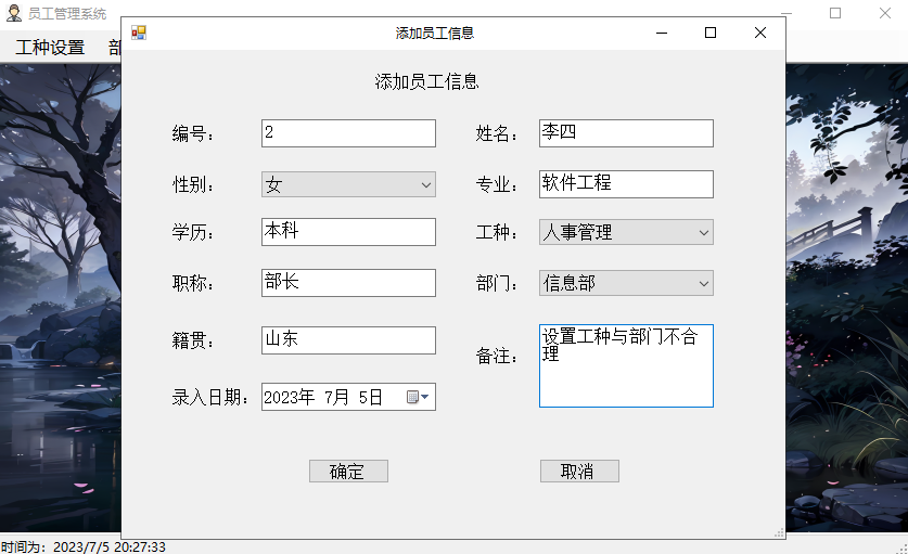 添加员工信息界面