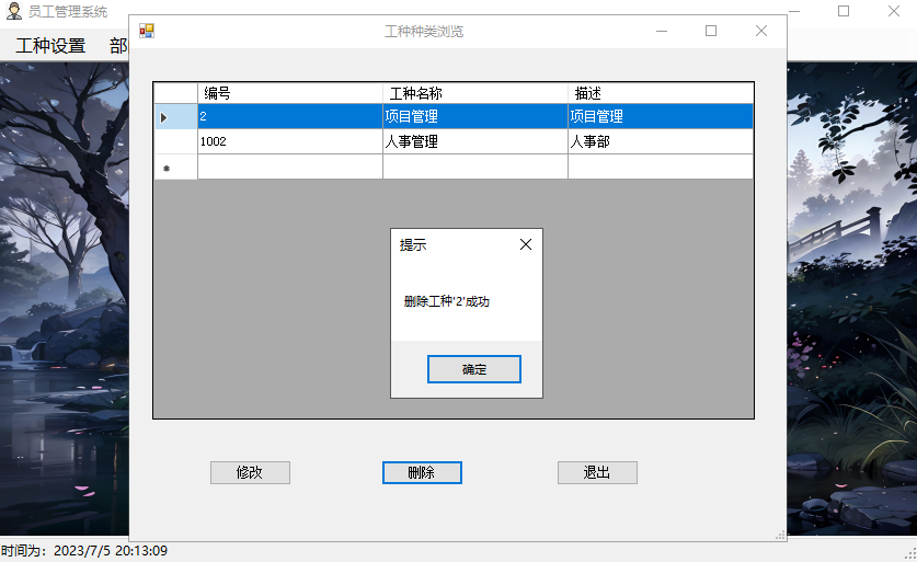 删除工种信息成功