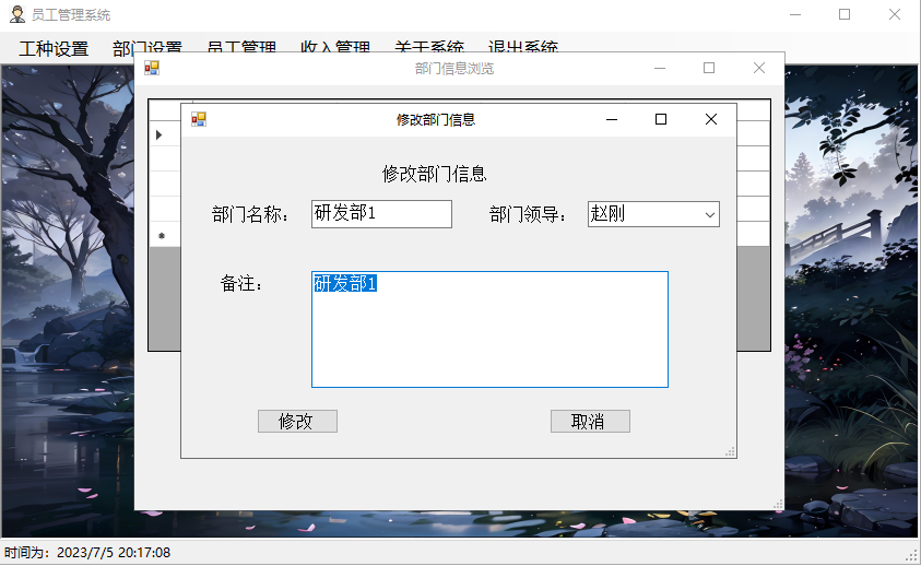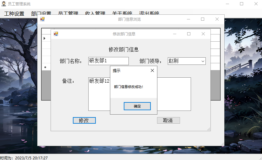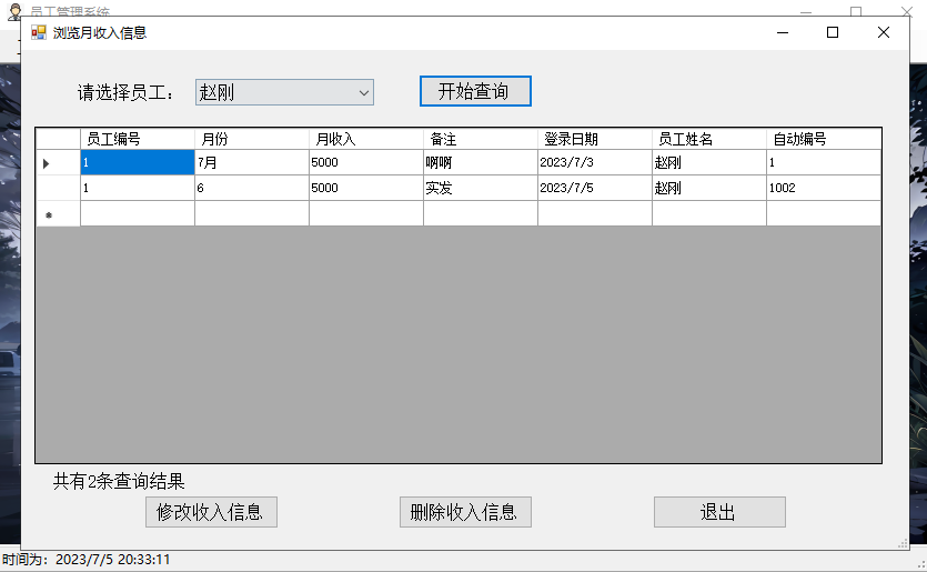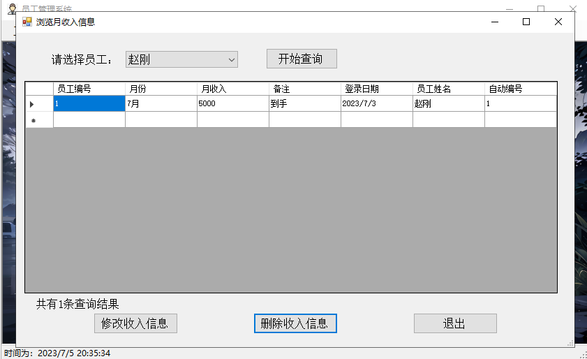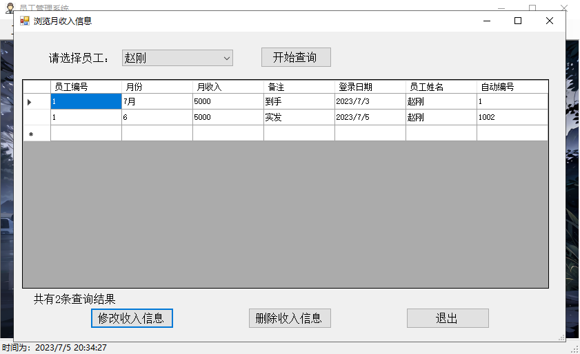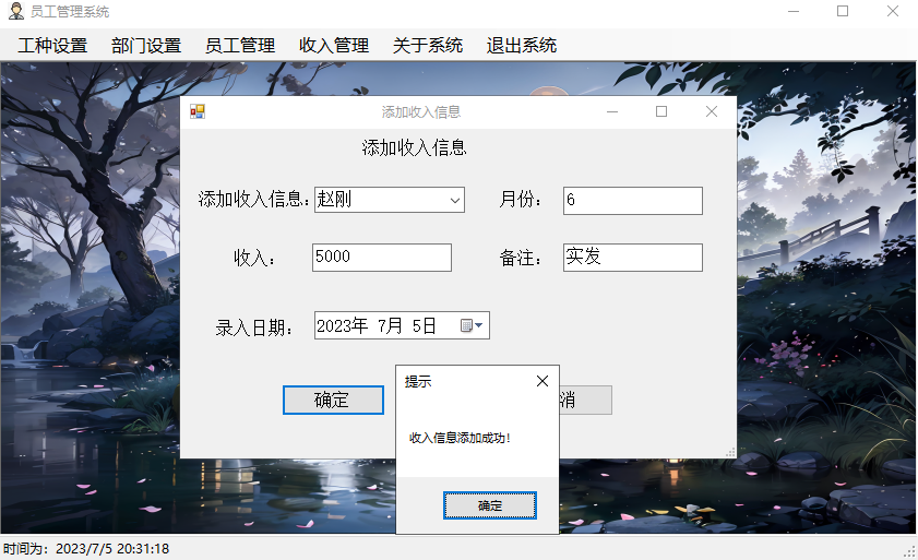 修改员工收入信息,并提示修改成功