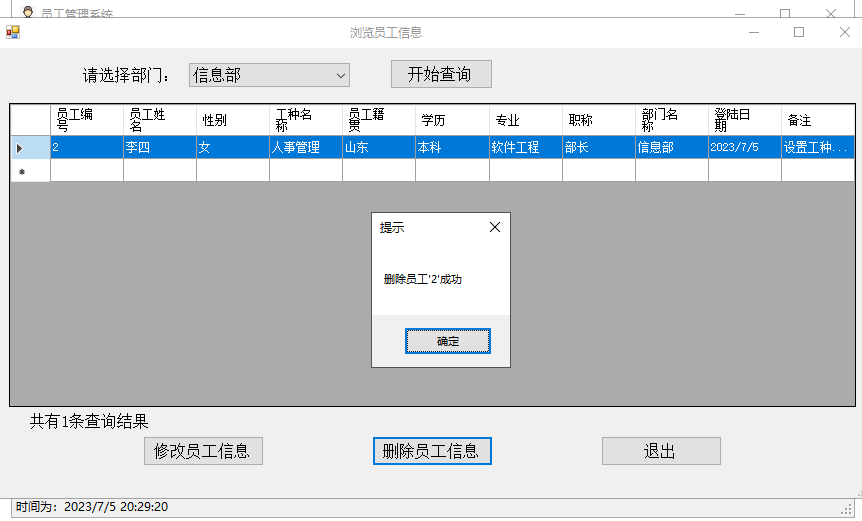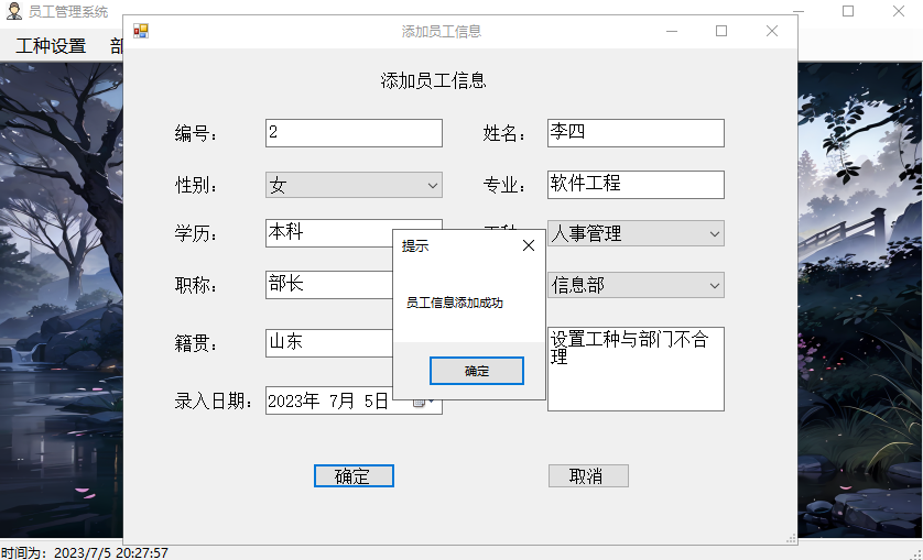 添加员工信息成功