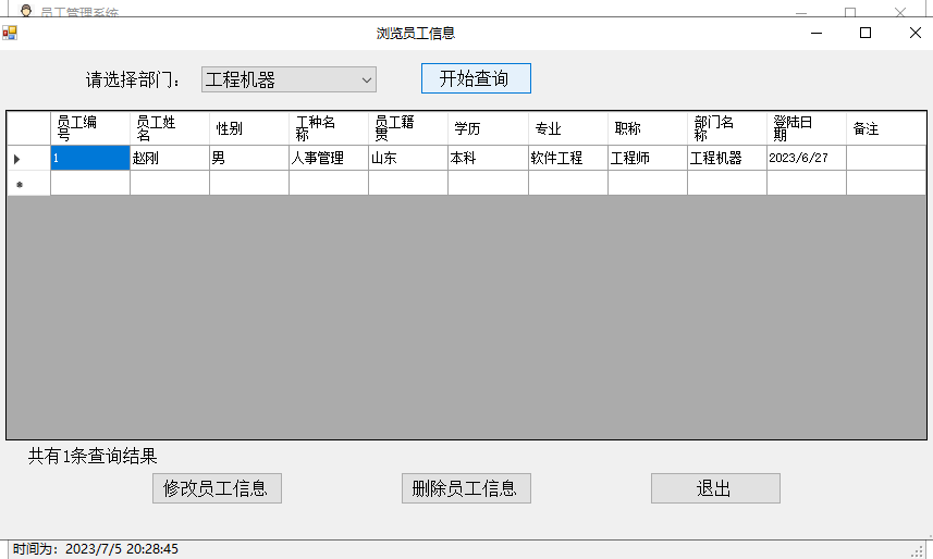 确定后刷新浏览员工信息