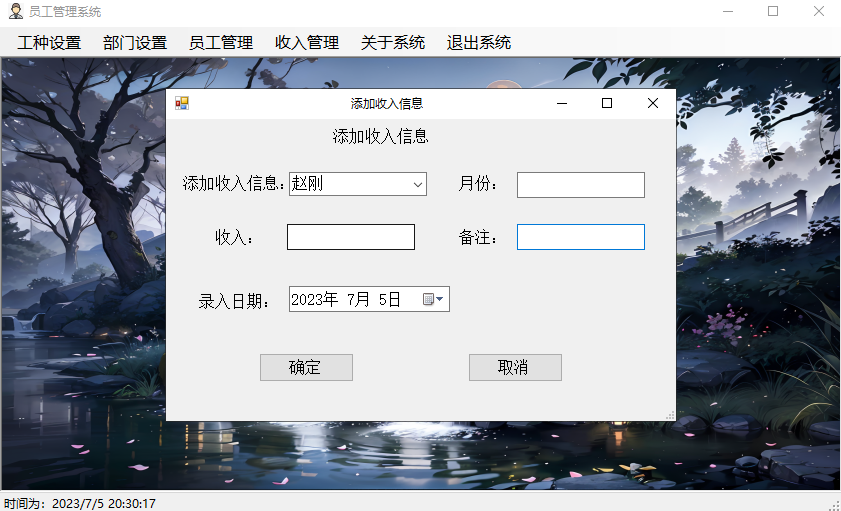 收入信息信息添加界面