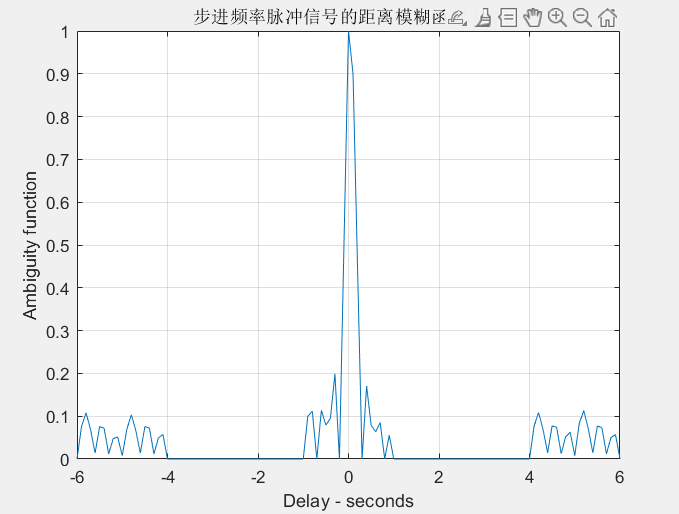 title('步进频率脉冲信号的模糊度图');