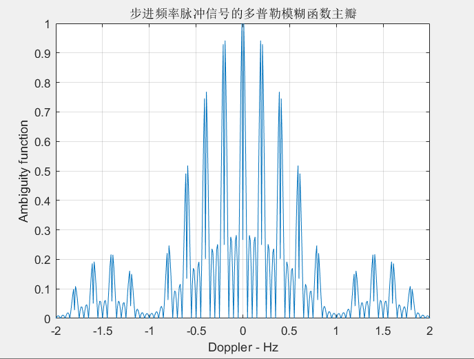 title('步进频率脉冲信号的多普勒模糊函数主瓣');