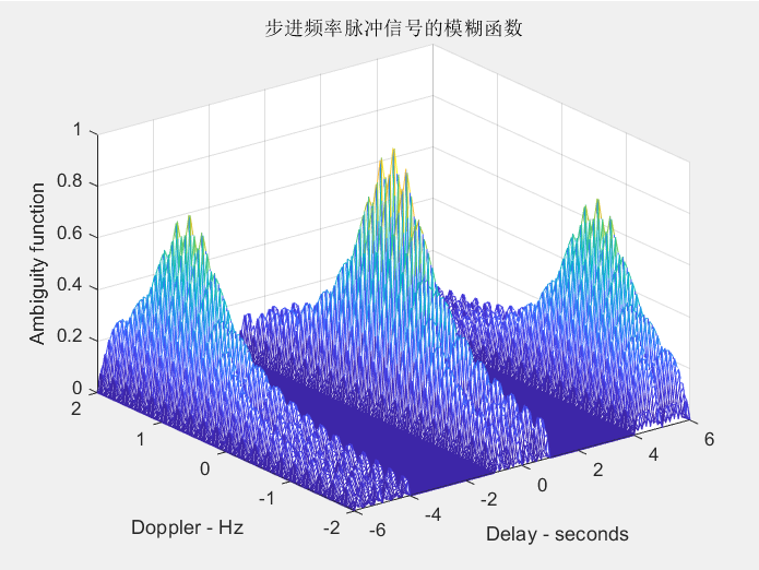 title('步进频率脉冲信号的模糊函数');