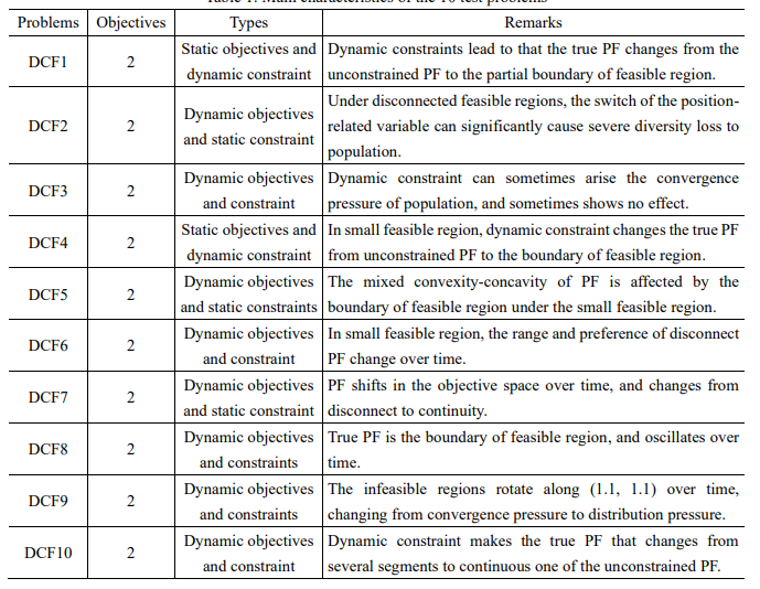Benchmark Problems for CEC2023 Competition on Dynamic Constrained Multiobjective Optimization中共包含10测试函数,其详细信息如下: