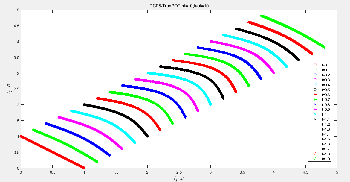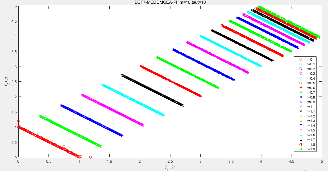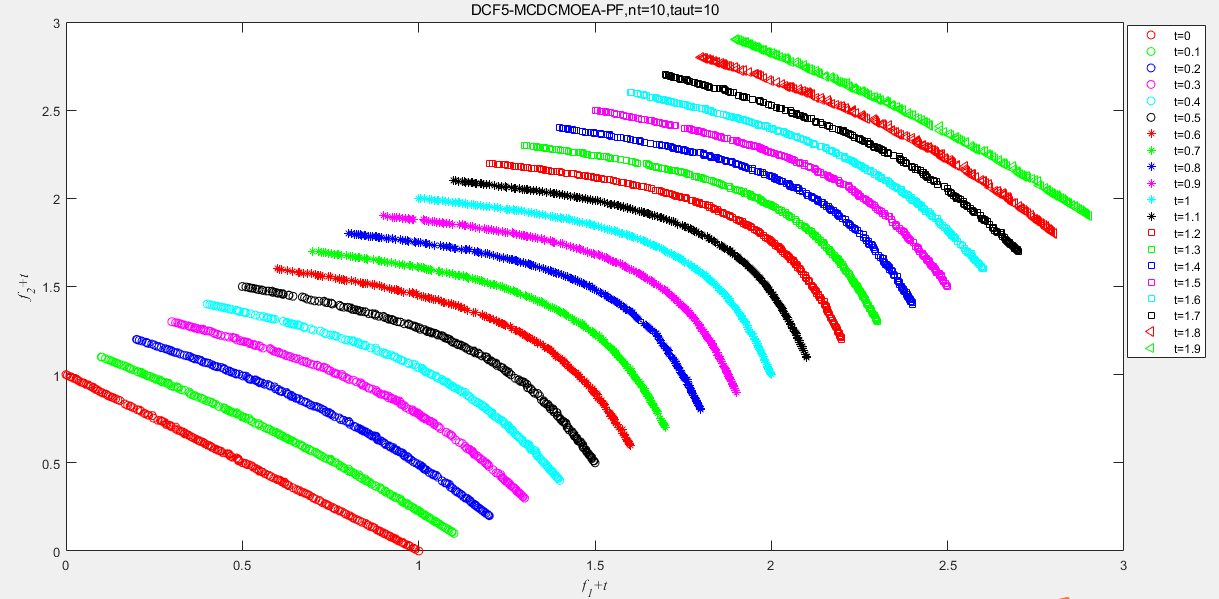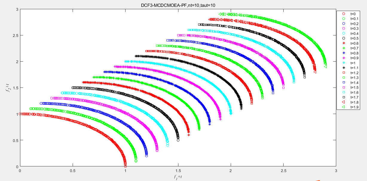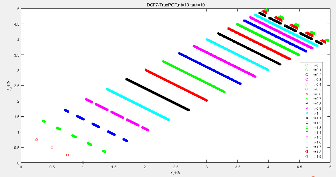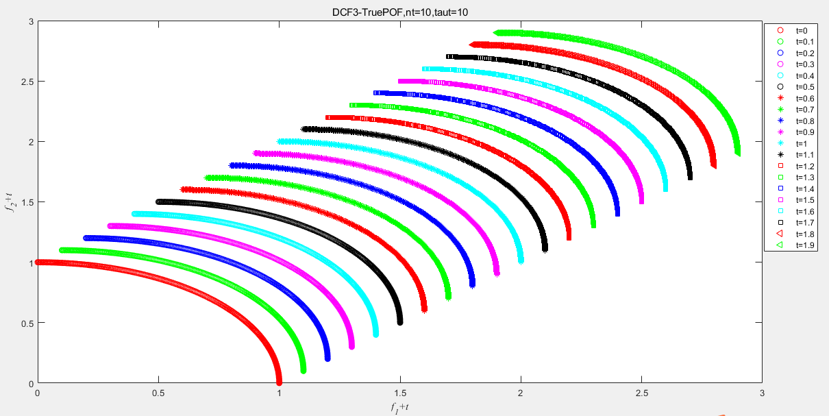 现实生活中,存在许多动态多目标优化问题(Dynamic Multi-objective Optimization Problems,DMOPs),这类问题的目标函数之间相互矛盾,并且目标函数、约束或者参数都可能随着时间的变化而发生变化.这种随时间不断变化的特性,给解决DMOPs带来了挑战,算法不仅要能够追踪到最优解,同时还要求算法能够快速地对发生的变化做出响应。其中,动态约束多目标优化(Dynamic Constrained Multiobjective Optimization,DCMO)是动态多目标优化问题中的一种,其问题较为复杂且求解难度大。动态约束多目标优化(Dynamic Constrained Multiobjective Optimization,DCMO)测试函数DCF1~DCF10的turePF_IT猿手的博客-CSDN博客