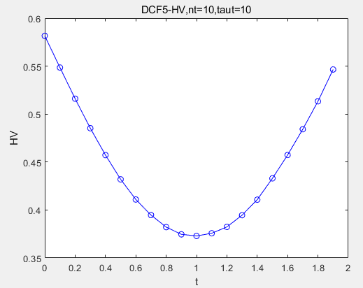 设置种群大小为100,外部存档大小为200,以DCF5为例,当取第1组参数设置时,即环境变化程度、环境变化频率 和最大迭代次数分别为10/5/100,其代码如下:(代码中更改TestProblem以此选择不同测试函数1-10,更改group选择不