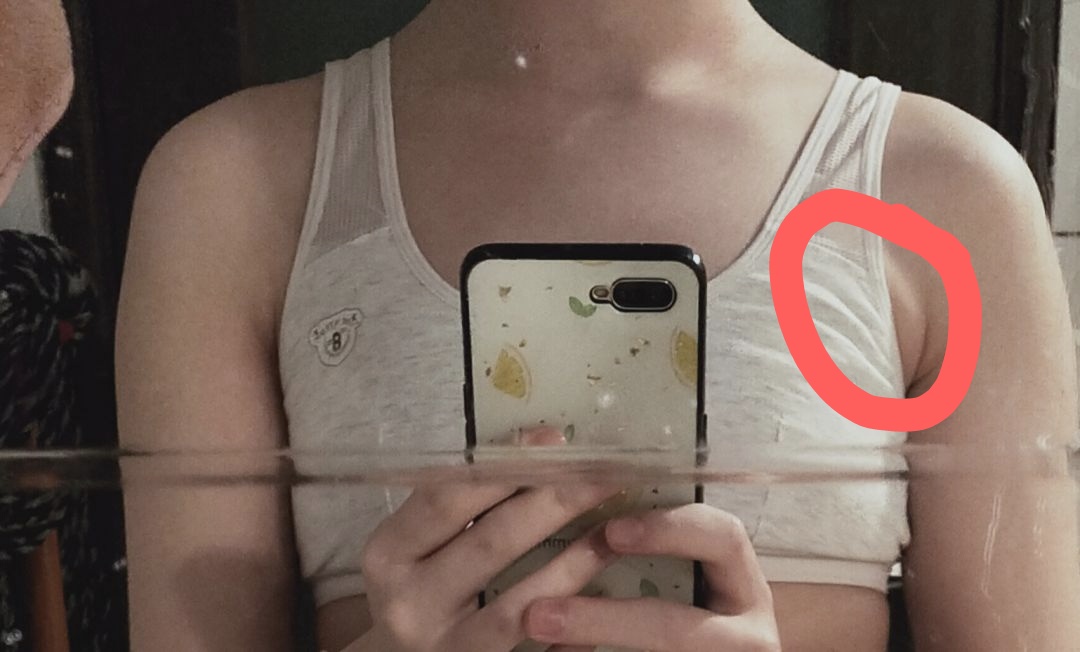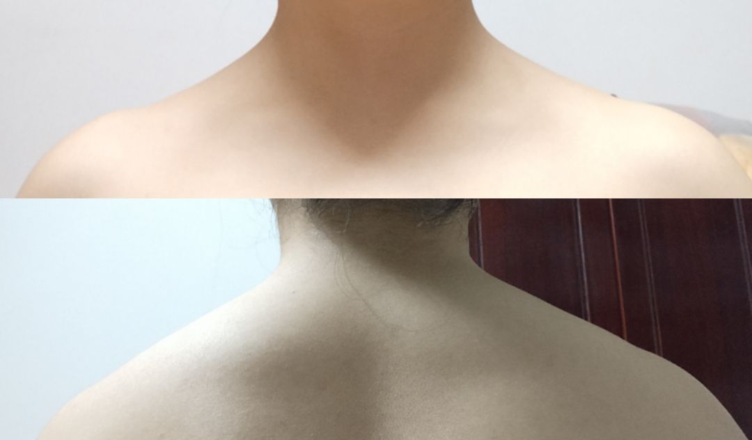 - 前面看肩颈难看,斜方肌看起来很发的,不够仙女味。穿吊带还有可能漏出难言之隐,副乳。