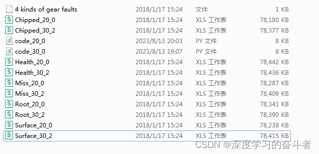 该数据集包含2个子数据集,包括轴承数据和齿轮数据,这两个子数据集都是在传动系动力学模拟器(DDS)上获取的。(第一个文件夹是轴承数据,第二个文件夹是齿轮数据,本次是针对齿轮数据进行故障诊断)