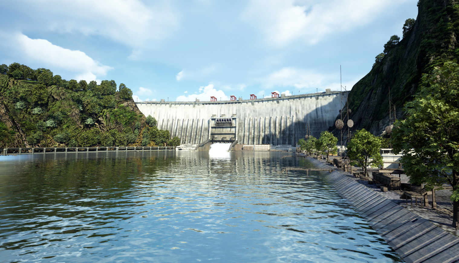 个人制作的UE5智慧水利大坝水库场景,带点击开闸放水蓝图,24小时全动态灯光实时渲染,效果如截图或视频所示,所见即所得,UE5版本5.1及以上,赠送个人制作和收集的5T素材资源库,如只需要素材资源库的话可单独点链接购买,资源库链接https://mbd.pub/o/bread/ZJuXlpZx