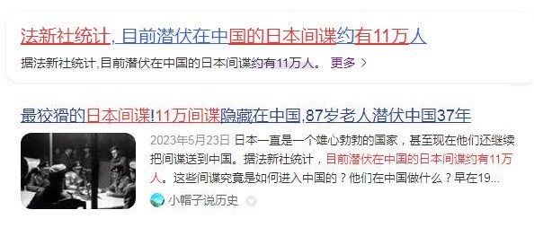 而《祖国》杂志特约日本问题专家郁志荣在文章中指出:有人估算,目前日本在华间谍不少于50万人(这个数据远远大于2018年法新社统计的11万数据)。