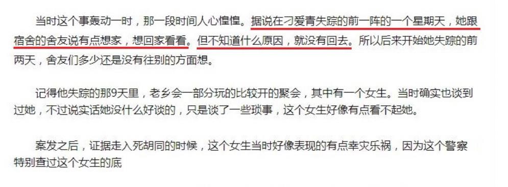 文章后半部分,主要讲解:案发后刁爱青的去向,与专案组的调查情况。