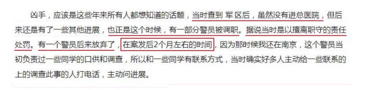 1996年1月20日警方发了《协查通报》,各大企事业单位,包括高校(也就是南京大学),被告知了部分衣物特征。