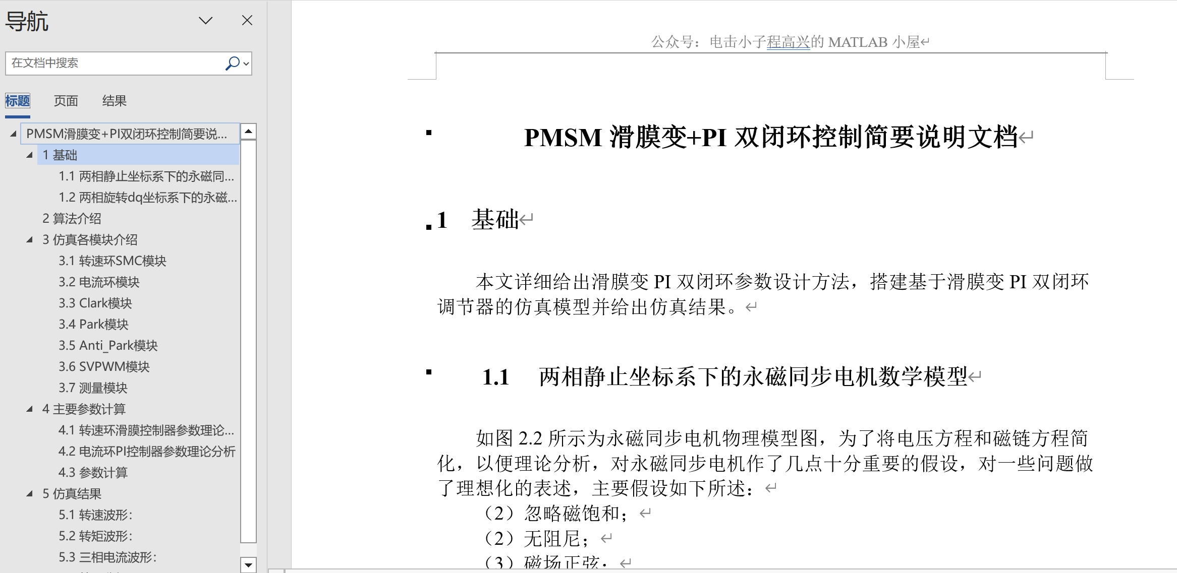 (2)采用转速、电流双闭环控制;速度外环采用滑膜控制、电流内环采用PI控制;