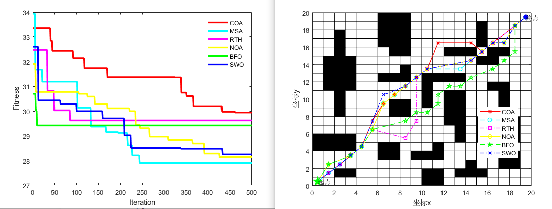 作品简介 6种最新算法(小龙虾优化算法COA、螳螂搜索算法MSA、红尾鹰算法RTH、新雀优化算法NOA、鳑鲏鱼优化算法BFO、蜘蛛蜂优化算法SWO)求解机器人路径规划(提供MATLAB代码)-CSDN博客 完整MATLAB代码 创作时间: