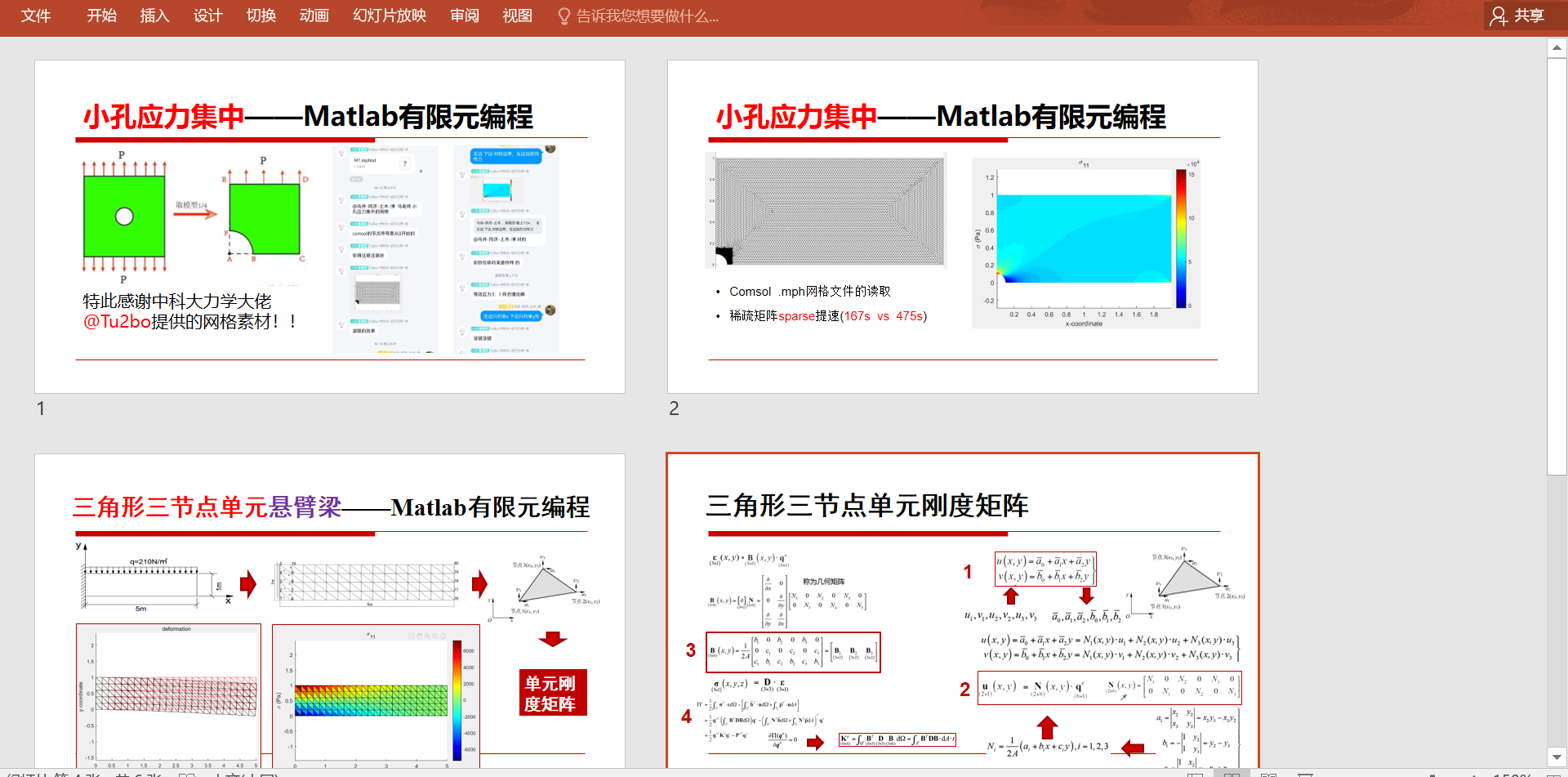 你将获得:带圆孔平板应力集中问题Matlab有有限元程序源码 + 课程讲义PPT