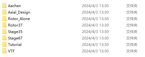 1、GEOMTURBO文件,Aachen、Axial_Design、Rotor37、Stage35、Stage67、VTF等一共20多套案例的geomturbo文件