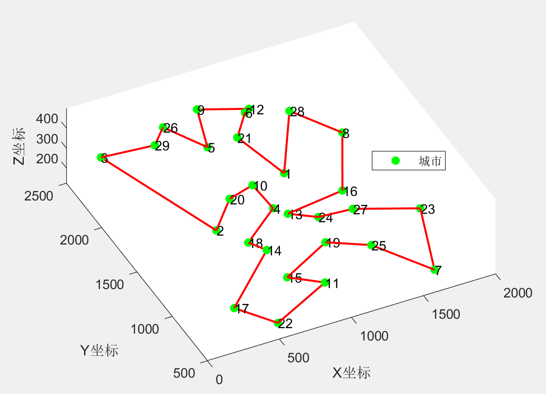 三维TSP:成长优化算法GO求解三维旅行商问题(MATLAB代码)可以更改城市坐标