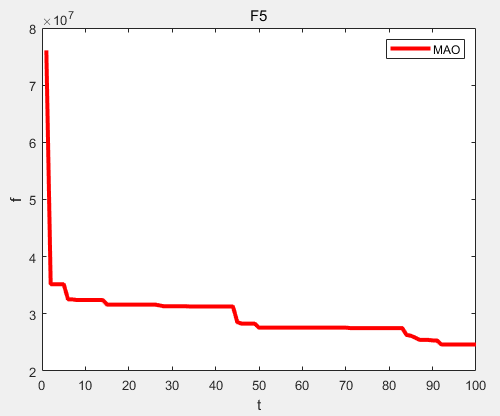[Fmin,Xmin,best_fitness]=MAO(npop,max_iter,lb,ub,nvars,fun);