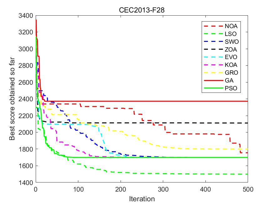 九种算法(NOA、LSO、SWO、ZOA、EVO、KOA、GRO、GA、PSO)求解CEC2013(提供MATLAB代码) - 知乎 (zhihu.com)