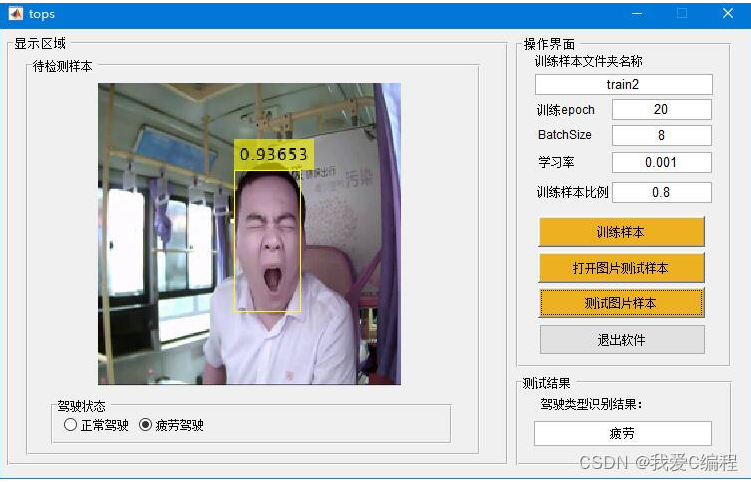 疲劳驾驶检测系统是一种基于深度学习网络的系统,它结合了Yolov2和GoogleNet模型,用于检测驾驶员的疲劳状态和人脸。疲劳驾驶检测系统主要包括两个部分:人脸检测和疲劳检测。其中,人脸检测使用Yolov2模型,而疲劳检测使用GoogleNet模型。