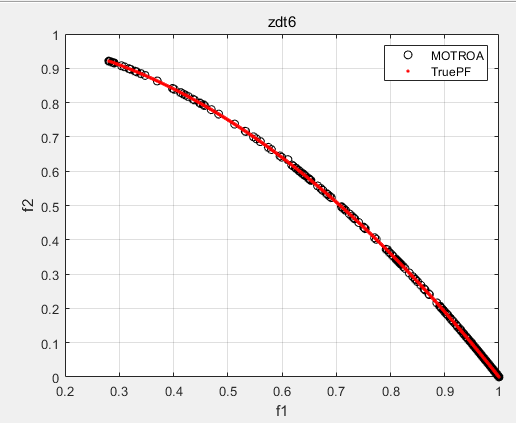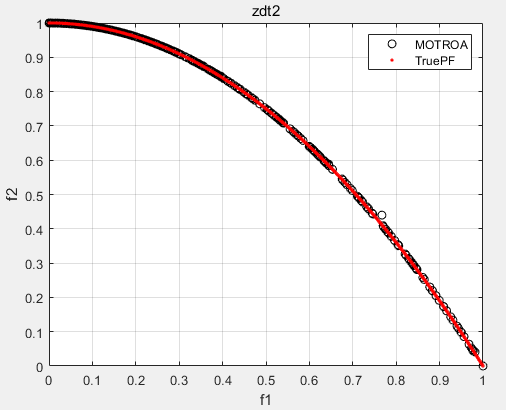 h_pf = plot(MultiObj.truePF(:,1),MultiObj.truePF(:,2),'.r'); hold on;