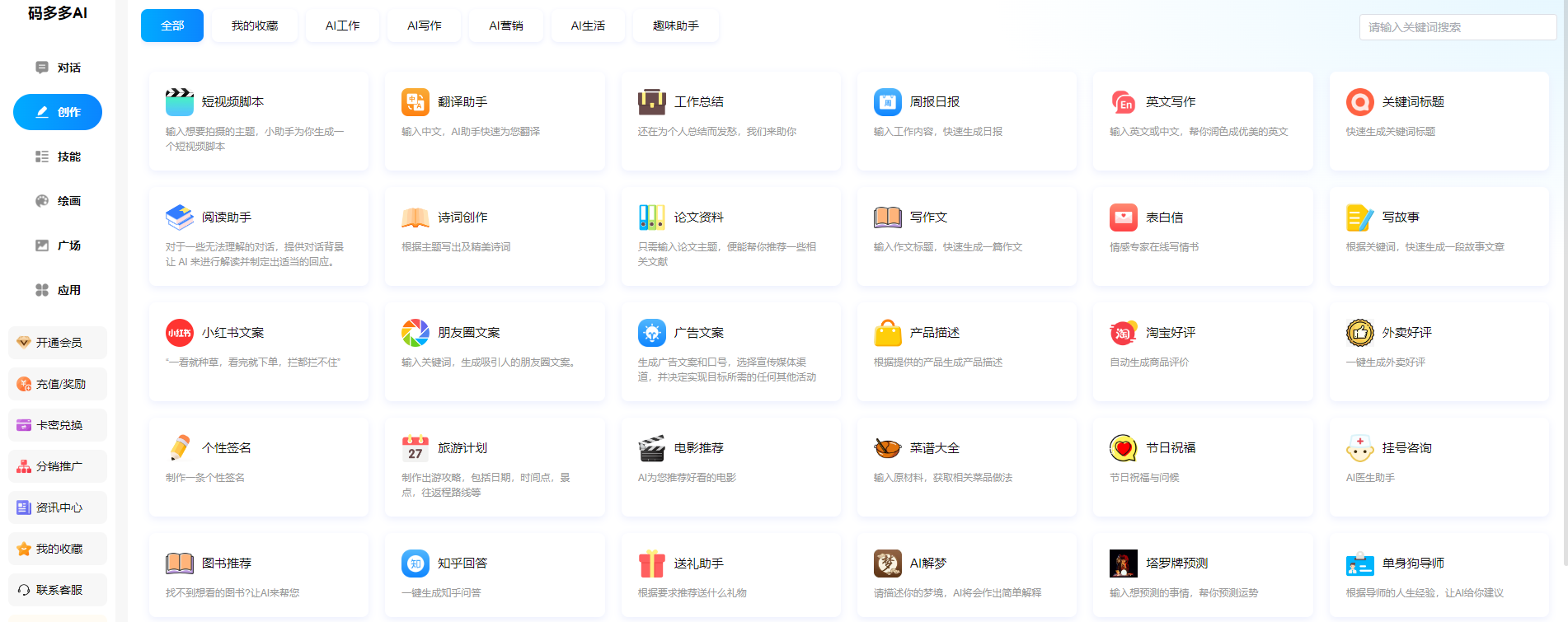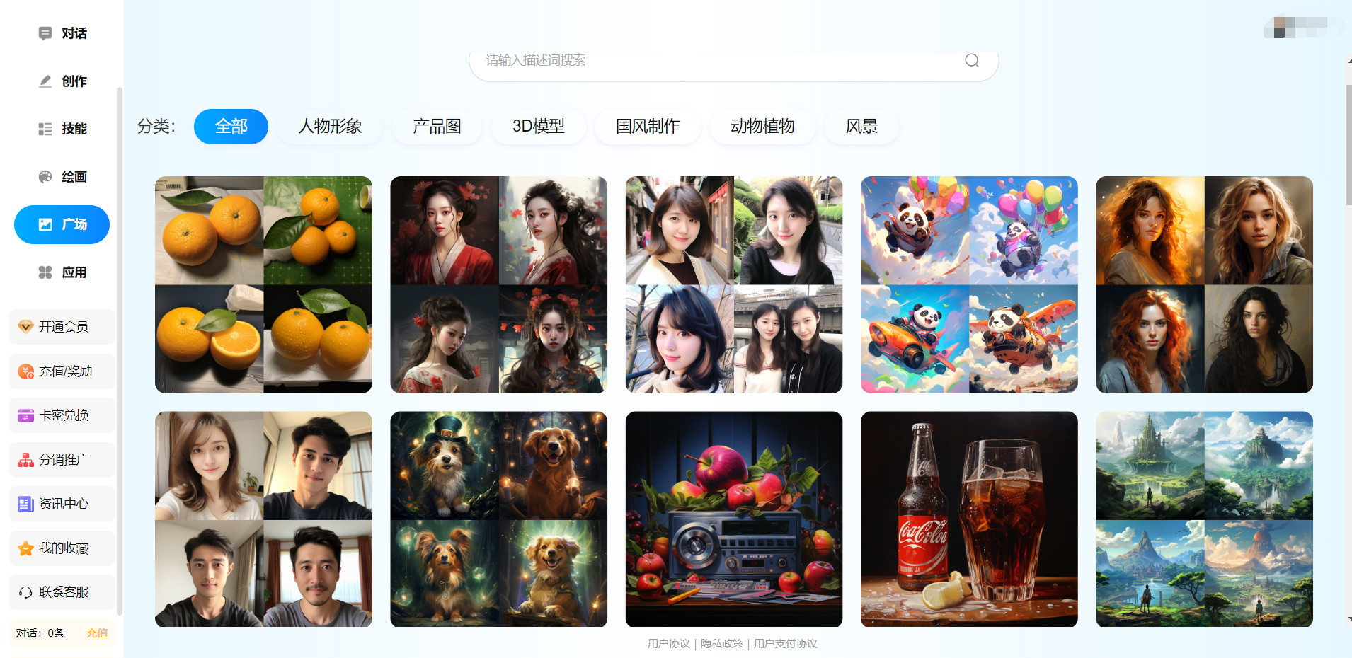 - 支持AI聊天智能创作,AI绘画,AI艺术二维码,AI绘画广场等功能