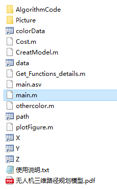文件夹内包含完整MATLAB代码,及使用说明,可以修改无人机的起始点及地图。