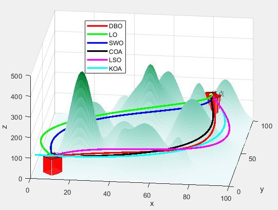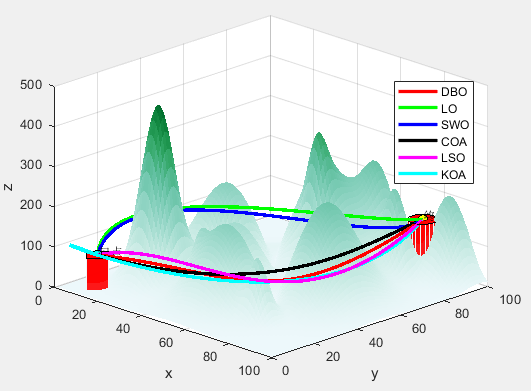 三、DBO、LO、SWO、COA、LSO、KOA求解无人机路径规划