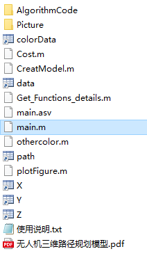 文件夹内包含完整MATLAB代码,及使用说明,可以修改无人机的起始点及地图。
