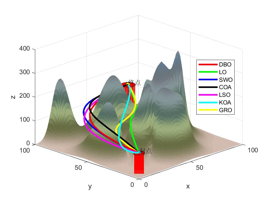 (五)七种元启发算法(DBO、LO、SWO、COA、LSO、KOA、GRO)求解无人机路径规划MATLAB