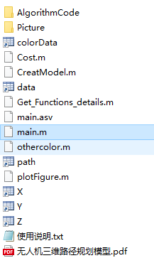 文件夹内包含完整MATLAB代码,及使用说明,可以修改无人机的起始点及地图。