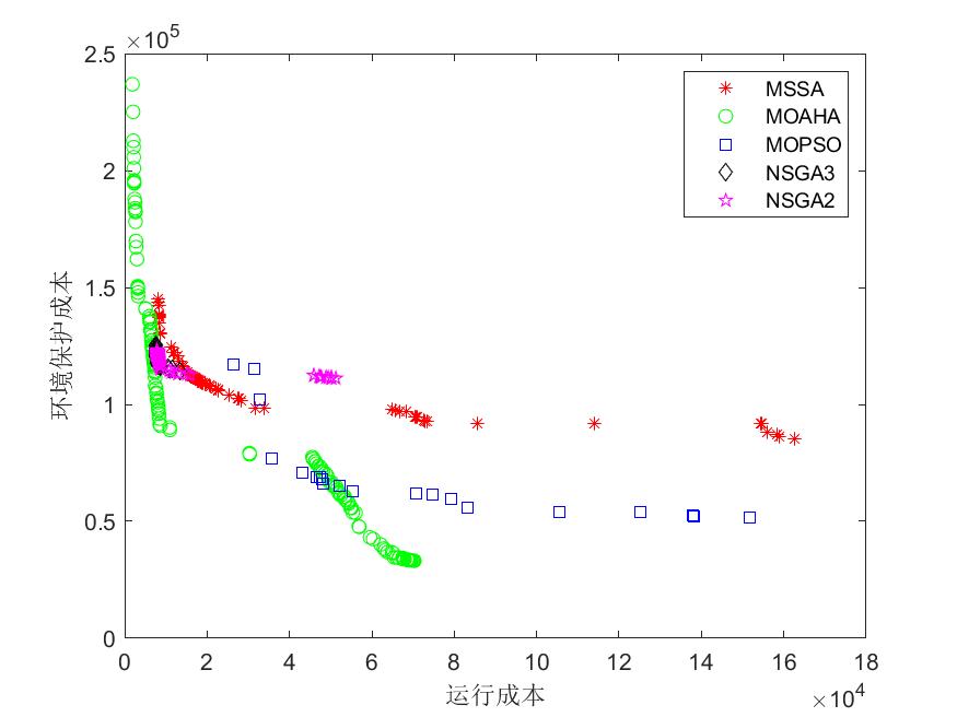AlgorithmName={'MSSA','MOAHA','MOPSO','NSGA3','NSGA2'};%算法名称