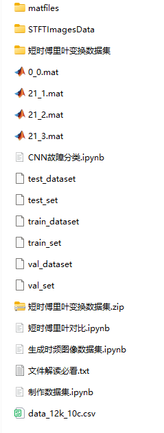 包括 完整CWRU轴承故障数据集, 以及已经生成制作好的一维故障信号数据集、时频图像数据集,对应代码均可以运行