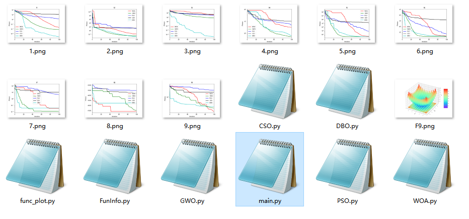 包含完整python代码,点击main.py即可运行,包含收敛曲线及函数图。
