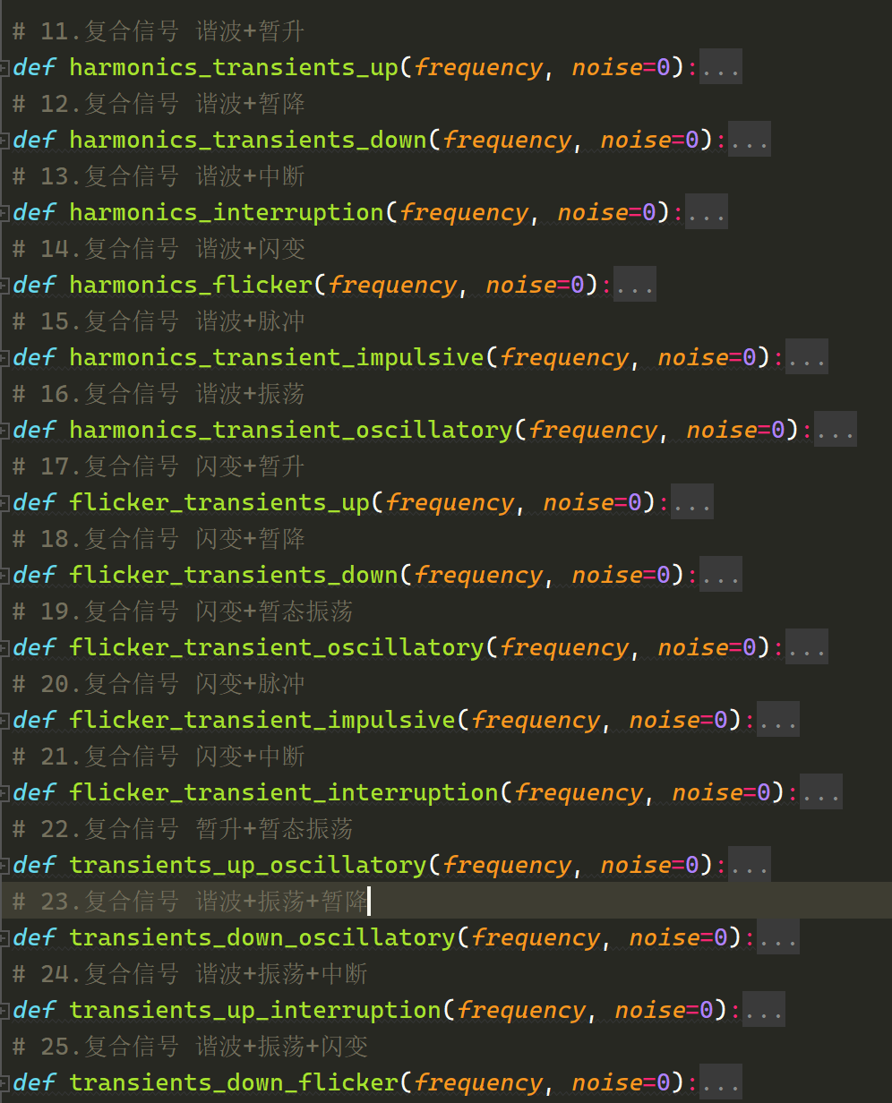 包括 完整28类单一扰动、复合扰动 数据公式的python实现, 以及已经生成制作好的信号数据集,对应代码均可以运行 (有了介绍的代码,不管多少种复合信号 都可以实现, 代码 注释解释的很详细)