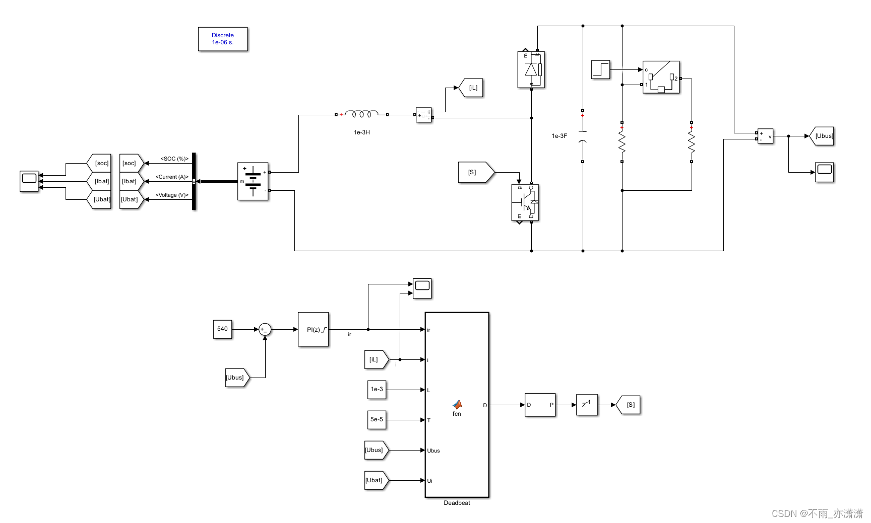 电池+Boost变换器+PI控制+无差拍控制+直流母线稳压
