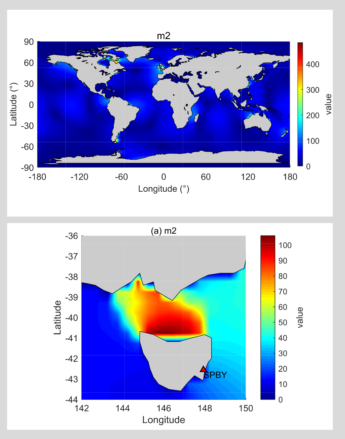 作品简介 以我们上文中的 m2 为例,绘制的全球区域的振幅以及局部区域的振幅分布图。如下图所展示,图示是基于 matlab2021b 版本以及上述中生成的 m2 的振幅数据做的绘图教程。教程不易,如果需要这部分绘图教程,感谢支持: 创作时间: