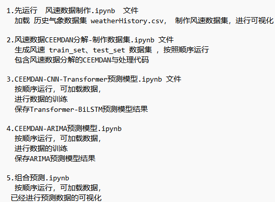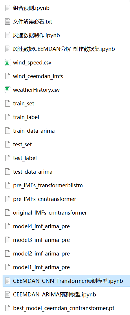 包括数据CEEMDAN预处理的代码,和完整CNN-Transformer模型预测代码、 ARIMA预测模型代码、可视化代码