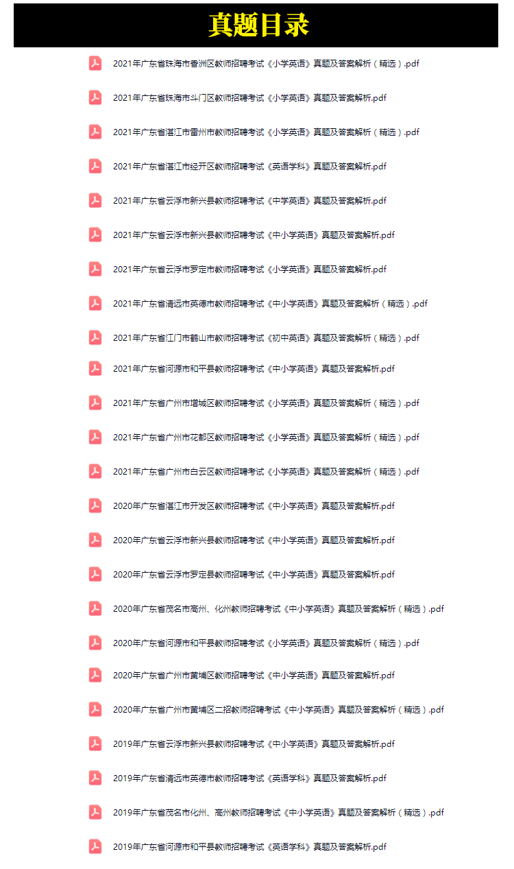 2019年-2021年广东省教师招聘考试英语学科专业知识笔试真题24套
