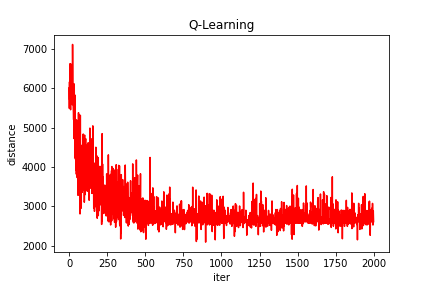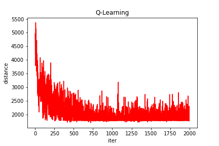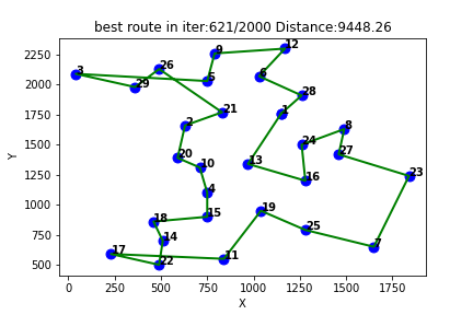 Q-learning得到的最短路线: [1, 28, 6, 12, 9, 5, 3, 29, 26, 21, 2, 20, 10, 4, 15, 18, 14, 22, 17, 11, 19, 25, 7, 23, 27, 8, 24, 16, 13, 1]